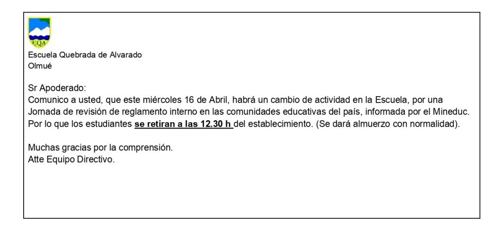 Aviso de Retiro Anticipado de Estudiantes – 16 de Abril PrevAnteriorPrueba de Acceso a la Educación Superior NextRevisión de reglamento InternoNext
