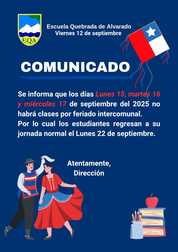Comunicado Feriado Intercomunal PrevAnteriorPrevención del Suicidio NextEscuela Quebrada de Alvarado obtiene el primer lugar en actividad comunal de trekking escolarNext